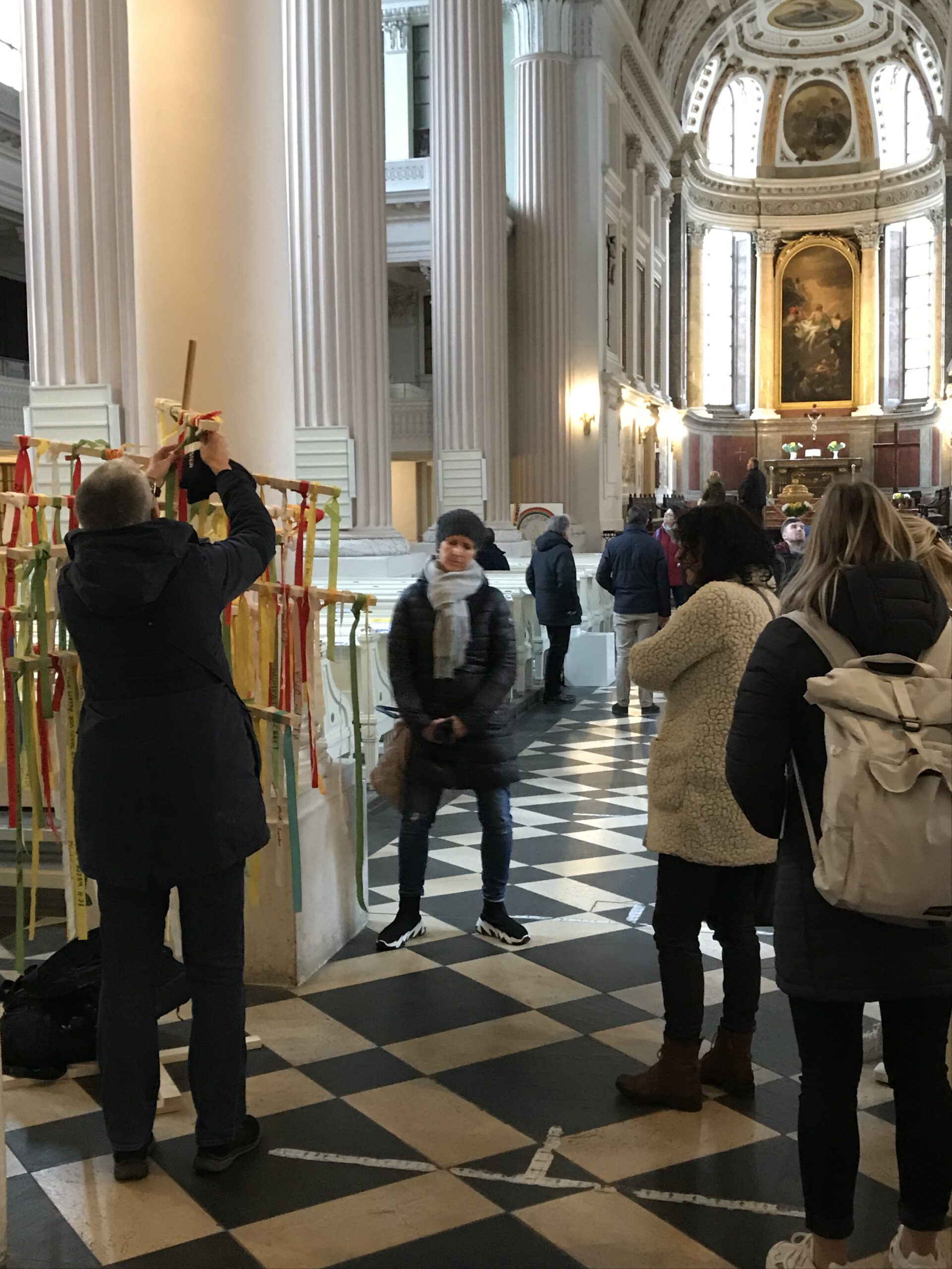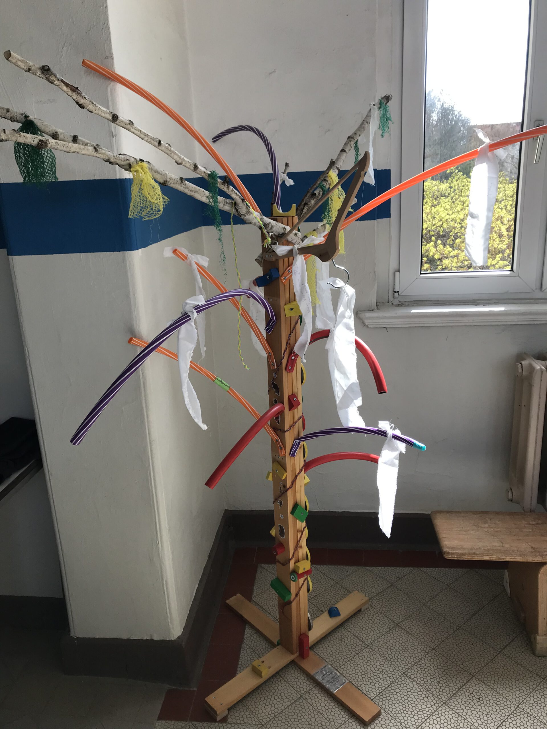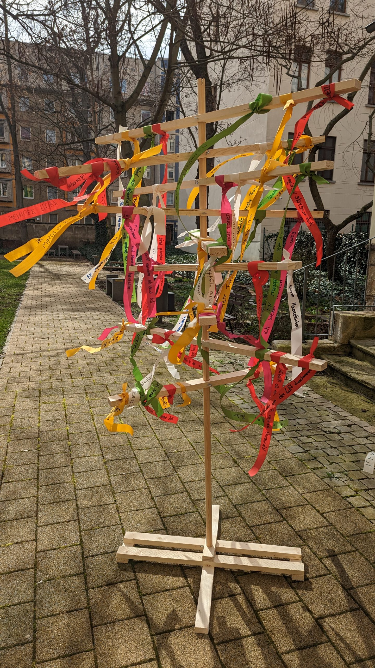 Beim ersten Zukunftswald Deutschlands: Der besteht aus etwa 100 Zukunftsbäumen, die mit 10.000 symbolischen Klimabändern als Versprechen an die Erde geschmückt sind: Was ändere ich in meinem Verhalten oder habe ich schon geändert?